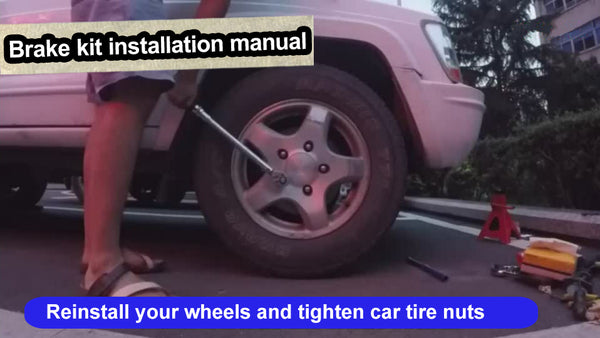 Reinstall your wheels and tighten each lug by hand until snug.Using your floor jack, slightly raise the vehicle and remove the jack stands under it. Carefully lower your car onto its wheels.